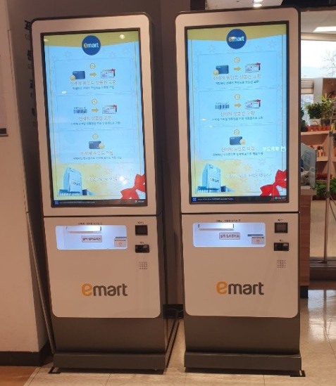 위와 같이 백화점 내에 비치된 상품권을 교환하는 무인교환기를 통해 지류 상품권으로 교환할 수 있습니다.