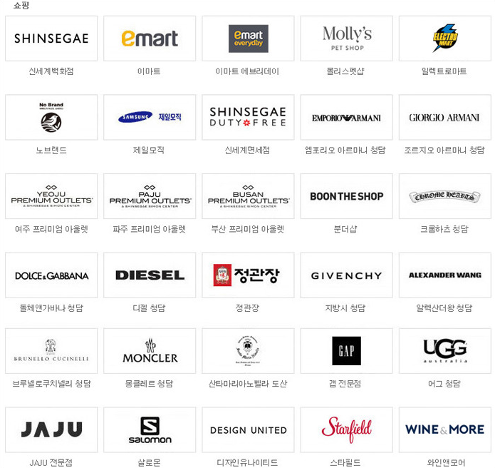 파주 프리미엄 아울렛, 부산 프리미엄 아울렛, 분더샵, 크롬하츠 청담, 돌체앤가바나 청담, 디젤 청담, 정관장, 지방시 청담, 알렉산더왕 청담, 브루넬로쿠치넬리 청담, 몽클레르 청담