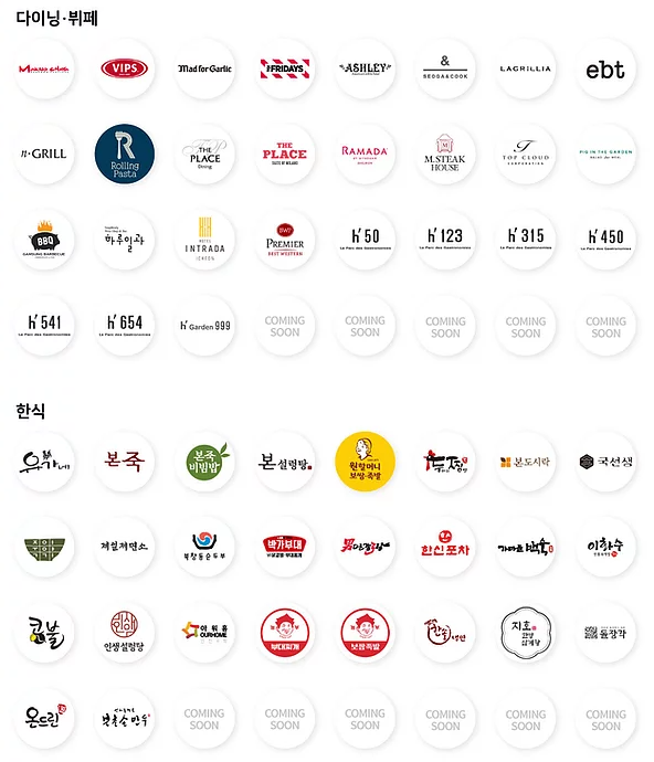 이 외에도 아래와 같이 다양한 가맹 매장들이 있는 것을 확인하실 수 있습니다.